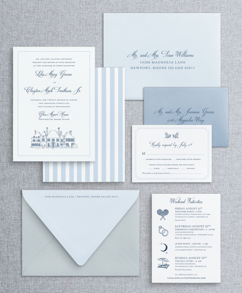 Guest Addressing on Envelopes, 2 Ply Stock, RSVP Envelope and a Details Card. These can be selected on your checkout form below!