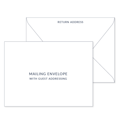 Along with upgraded paper stock, envelope addressing is my most popular add-on. Designed with coordinating fonts and colors envelopes can be digitally printed. Envelope addressing is $1.75/ invitation and if this option is added an excel file for inputting your addresses will be provided. RSVP envelopes come pre-printed with your response address.