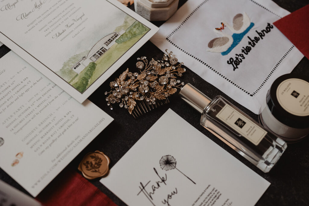 Saltwater Farm Vineyard is more than just a venue—it’s a place where love stories unfold against a backdrop of rustic elegance and timeless romance. From its storied past to its breathtaking present, it offers everything you need for a memorable Stonington vineyard wedding. At Elated Paper Co., we are honored to help couples set the tone for their Saltwater Farm Vineyard wedding with bespoke stationery that captures the essence of this extraordinary place. If you’re dreaming of a wedding that’s both heartfelt and refined, Saltwater Farm Vineyard awaits to bring your vision to life.