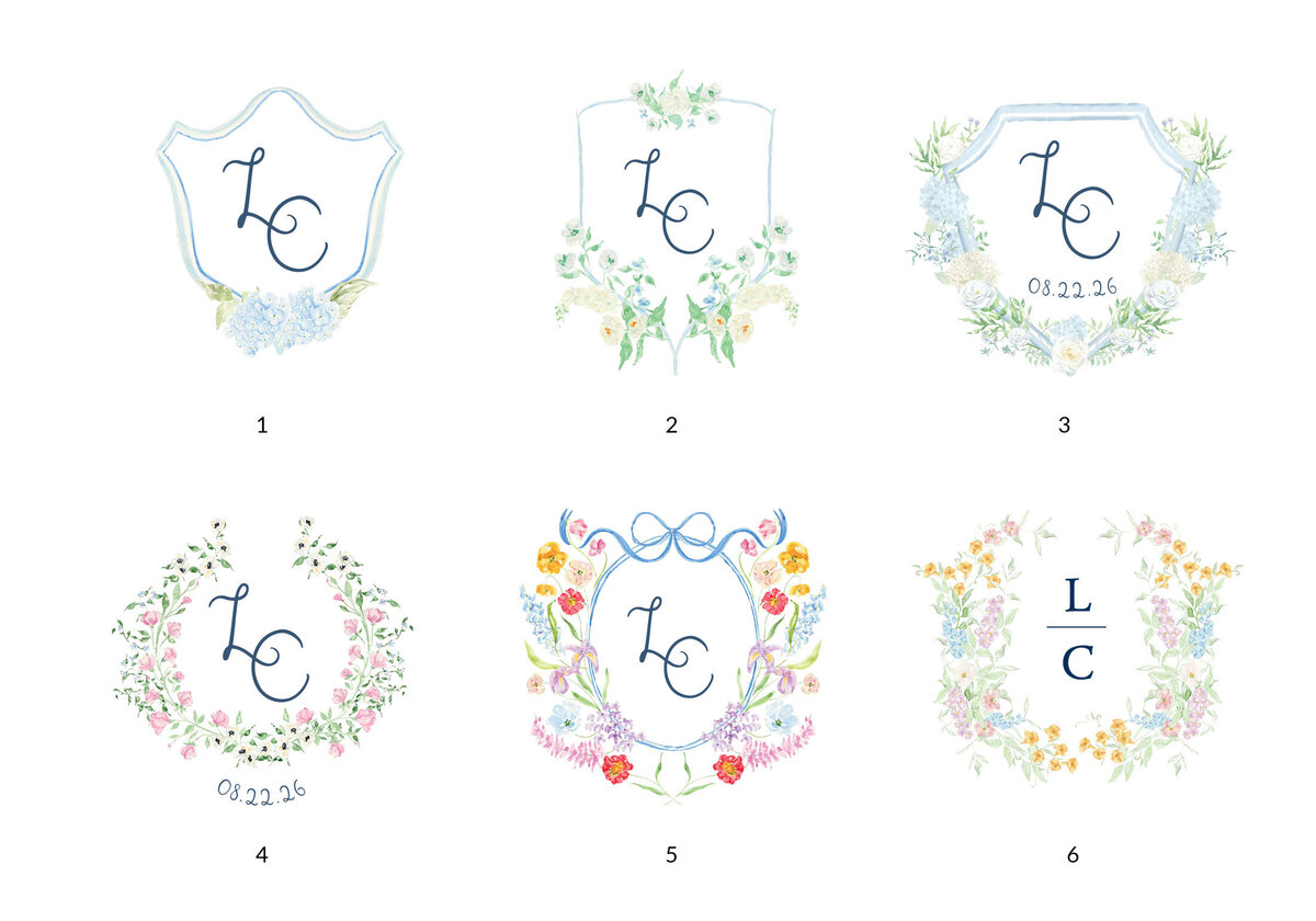 After placing your order an email will be sent with a form link to fill out all individual information. This is where you'll select your crest choice, icon choice(s), font pairings, ink colors and envelope color(s)