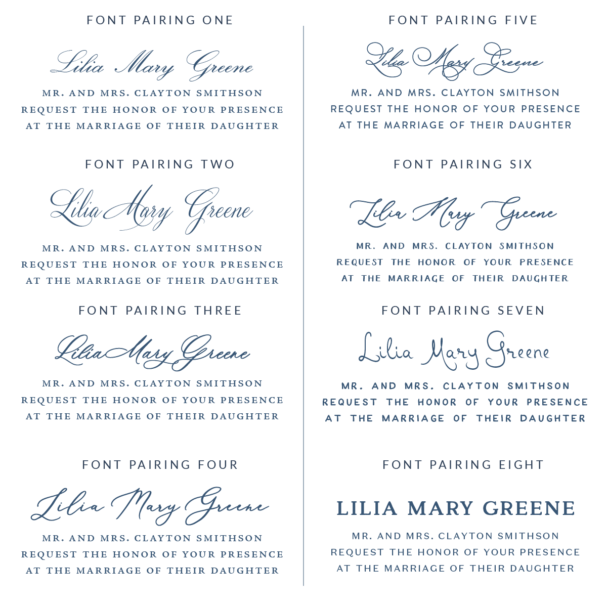 All OTS designs can be personalized with one of 8 font pairings or the fonts shown in the original design. Font adjustments beyond those are not included